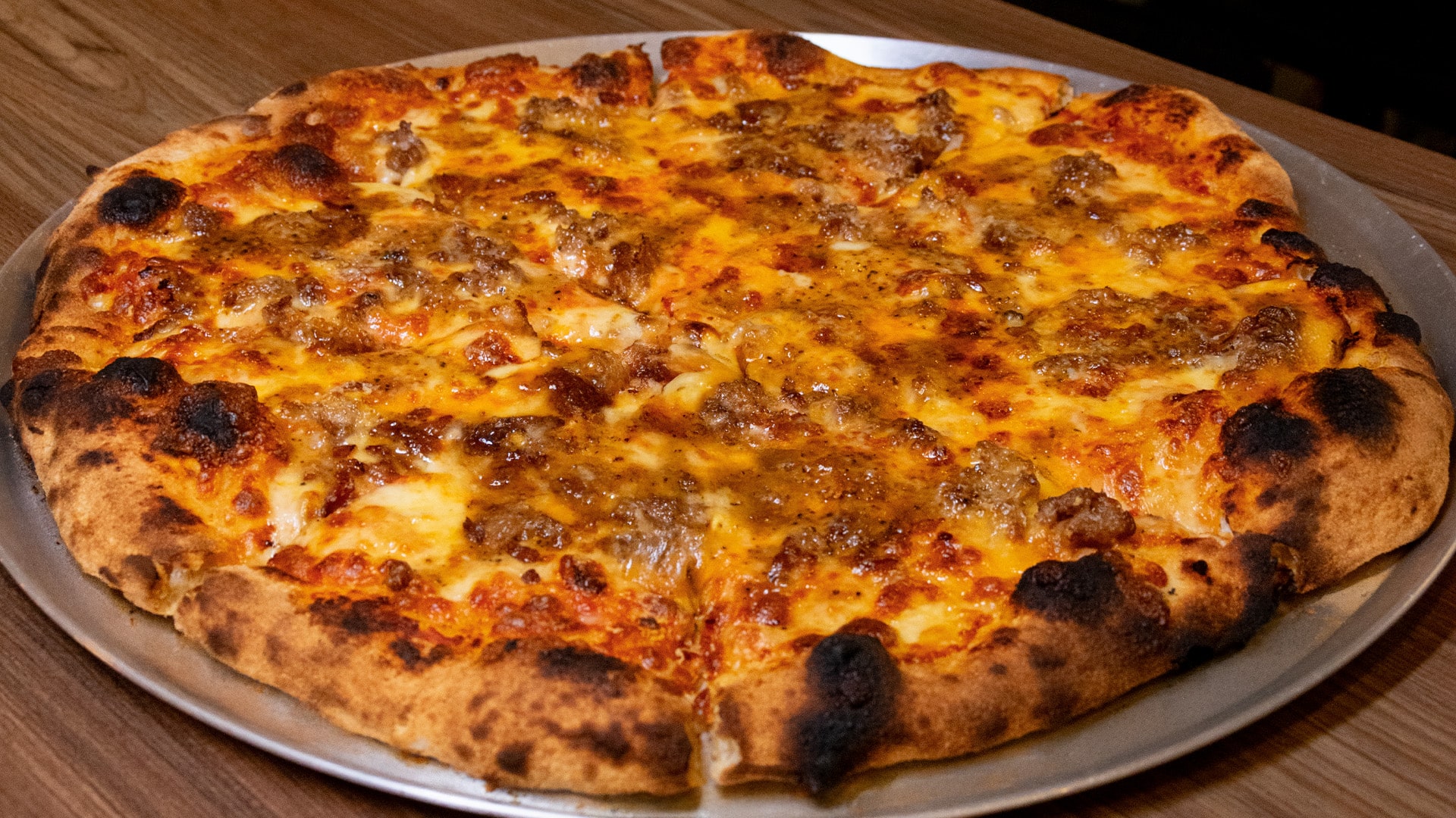 Deliciosa vodka sauce* sobre una cama de mozzarella gratinado pepperoni mozzarella extra y Parmigiano Reggiano